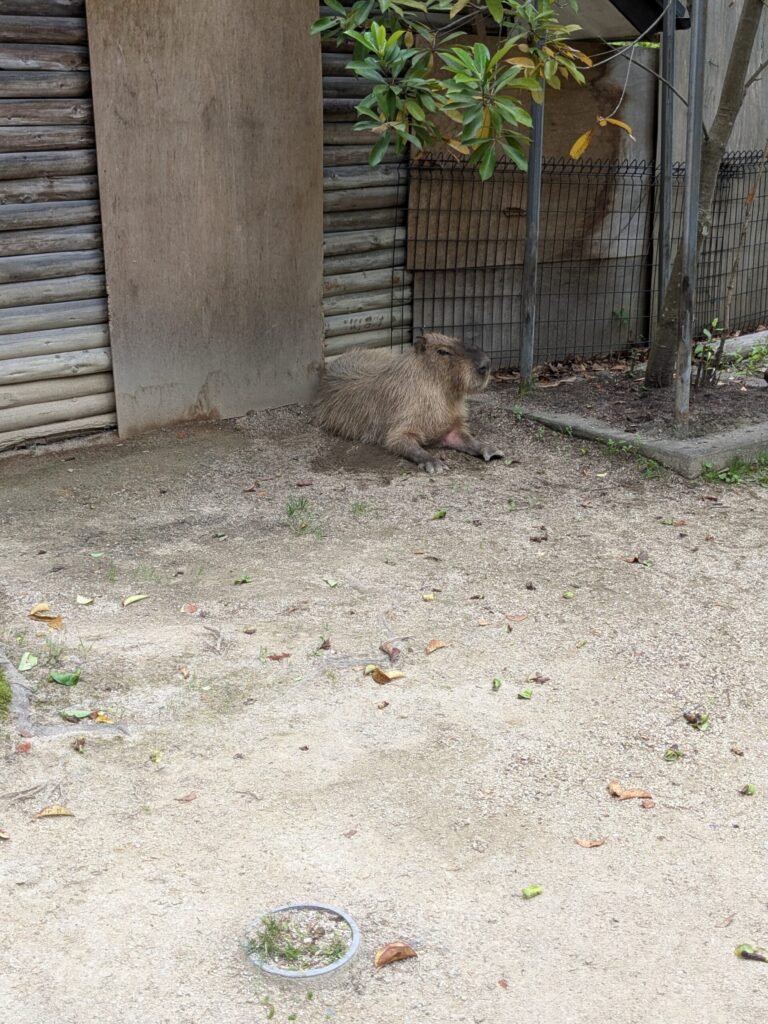 - カピバラ: 広いスペースで、のんびりと過ごしていました。