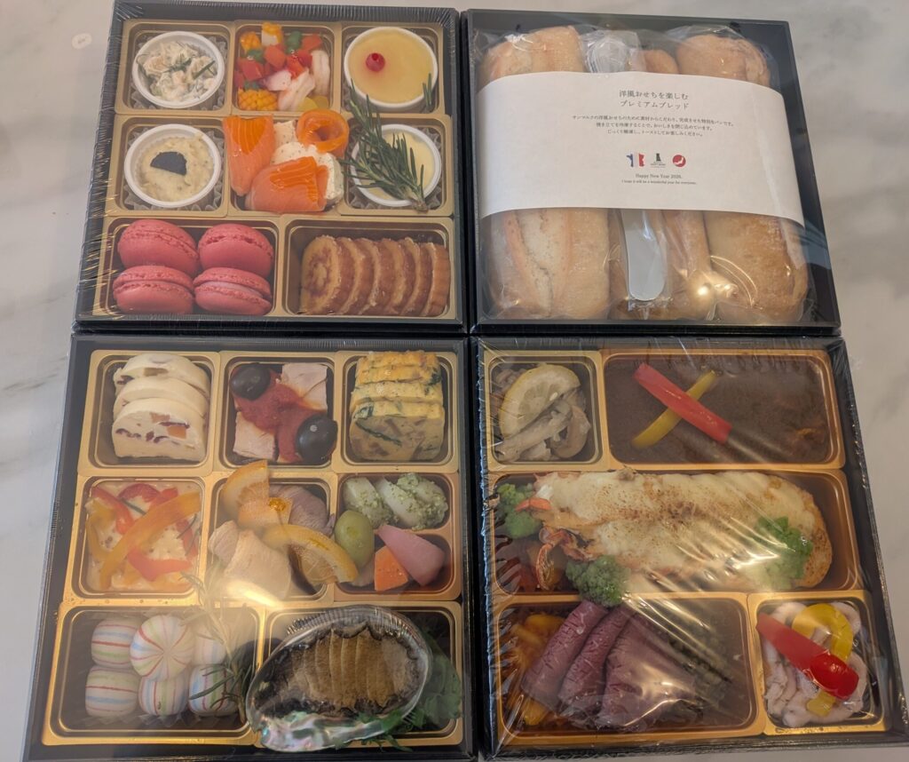 公式サイトで確認した際、今年の「ボヌール」は四段重で21品目という圧倒的なボリューム。さらに「ロゴ入りのカッティングボード」や「バターナイフ」といった、お正月が終わった後も使える実用的な特典が付いていたのも魅力的でした🎁