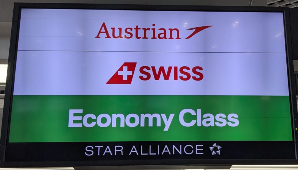 今回の旅の始まりは成田空港。利用したのは**スイス インターナショナル エアラインズ(SWISS)**の直行便です。