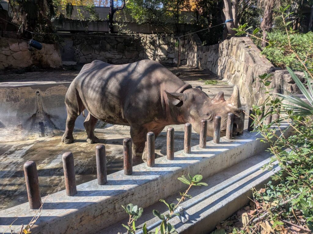 続いて、大型動物たちが集まるエリアへ。サイの鎧のような皮膚、キリンの長い首、そしてゾウのどっしりとした足取り。